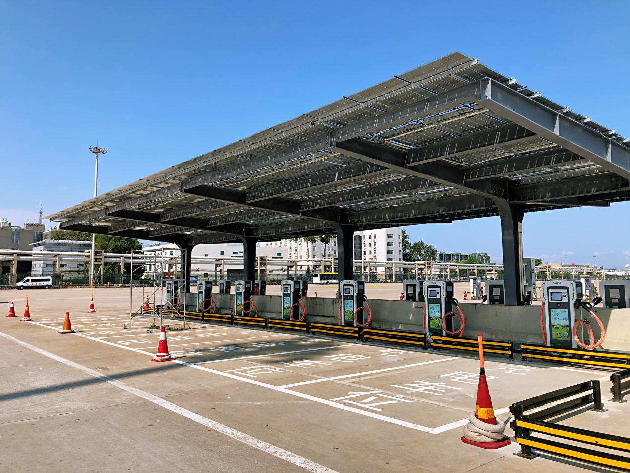 首都機(jī)場飛行區(qū)2號門附近的光儲充一體化充電設(shè)施(作者周洋,首都機(jī)場供圖)