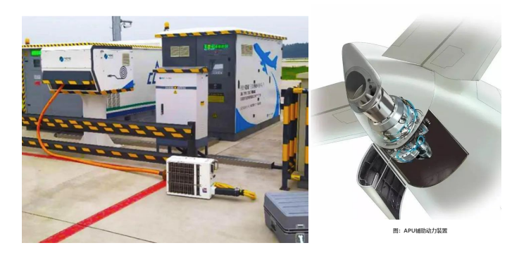 首都機(jī)場地面一體型儲能式APU(左圖),替代了飛機(jī)輔助發(fā)動機(jī)(圖片來自網(wǎng)絡(luò))