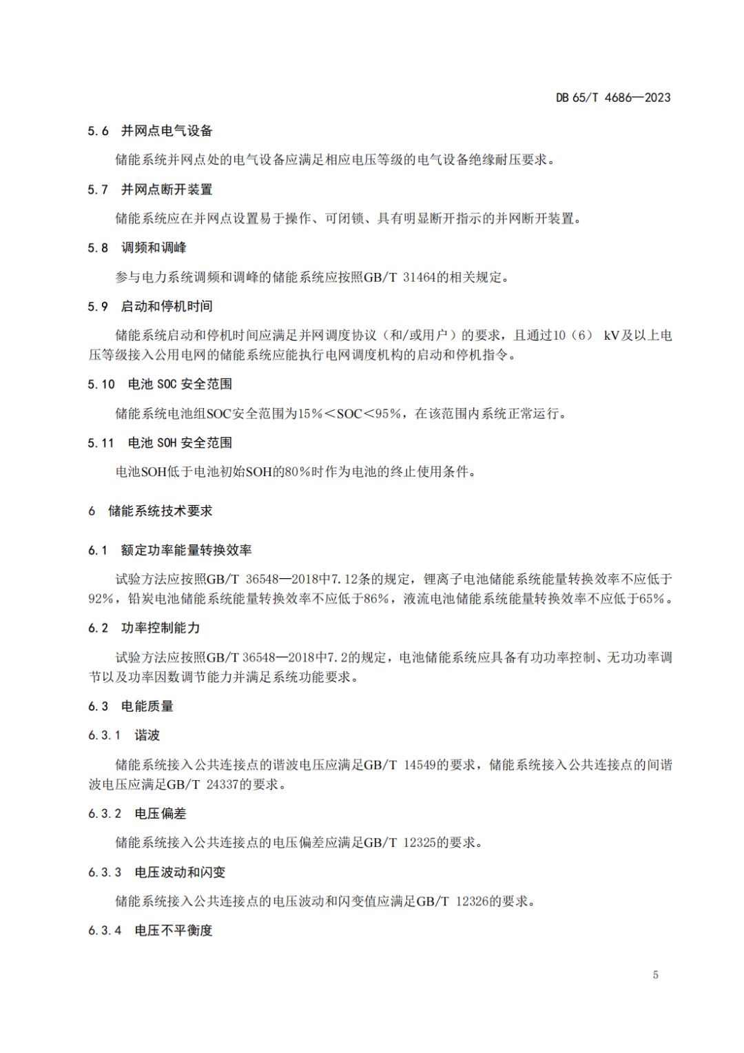 針對儲能系統(tǒng)技術(shù)要求,提出鋰離子電池儲能系統(tǒng)能量轉(zhuǎn)換效率不應(yīng)低于92%,鉛炭電池儲能系統(tǒng)能量轉(zhuǎn)換效率不應(yīng)低于86%,液流電池儲能系統(tǒng)能量轉(zhuǎn)換效率不應(yīng)低于65%。