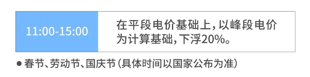 同時(shí),為緩解重大節(jié)日期間電力階段性供大于求的現(xiàn)象,鼓勵(lì)和引導(dǎo)有調(diào)節(jié)能力的連續(xù)生產(chǎn)工業(yè)電力用戶主動(dòng)增加用電負(fù)荷,提升電力系統(tǒng)整體效能,對(duì)315千伏安及以上的工業(yè)用電試行重大節(jié)日深谷電價(jià),在每年春節(jié)、“五一”國(guó)際勞動(dòng)節(jié)、國(guó)慶節(jié)期間,11:00-15:00,在平段電價(jià)基礎(chǔ)上,以峰段電價(jià)為計(jì)算基礎(chǔ),下浮20%。前述三個(gè)節(jié)假日具體時(shí)間以國(guó)家公布為準(zhǔn)。