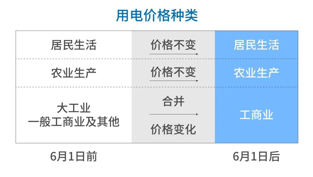 自6月1日起我省執(zhí)行第三監(jiān)管周期輸配電價(jià),工商業(yè)用戶用電價(jià)格由上網(wǎng)電價(jià)、上網(wǎng)環(huán)節(jié)線損費(fèi)用、輸配電價(jià)、系統(tǒng)運(yùn)行費(fèi)用、政府性基金及附加組成。將大工業(yè)用電、一般工商業(yè)及其它用電歸并為工商業(yè)用電,歸并后,我省電力用戶用電價(jià)格分為居民生活用電、農(nóng)業(yè)生產(chǎn)用電和工商業(yè)用電三類。