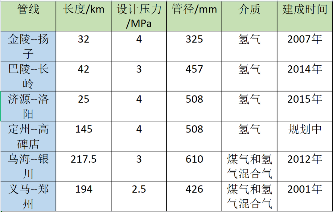 表1 我國氫氣長輸管線建設(shè)情況