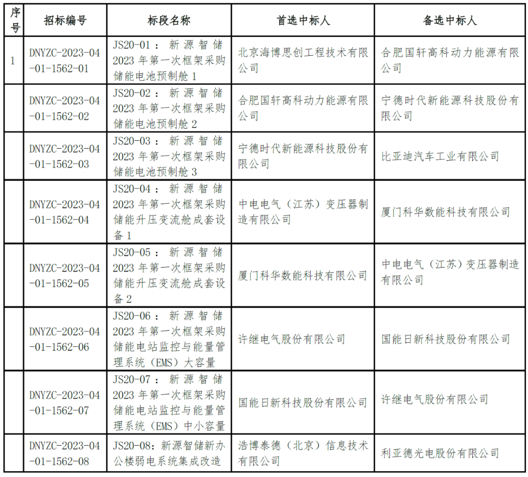 海博思創(chuàng)、國軒高科、寧德時(shí)代瓜分三個(gè)標(biāo)段儲(chǔ)能電池預(yù)制艙采購,采購容量合計(jì)770MWh,儲(chǔ)備容量合計(jì)770MWh。