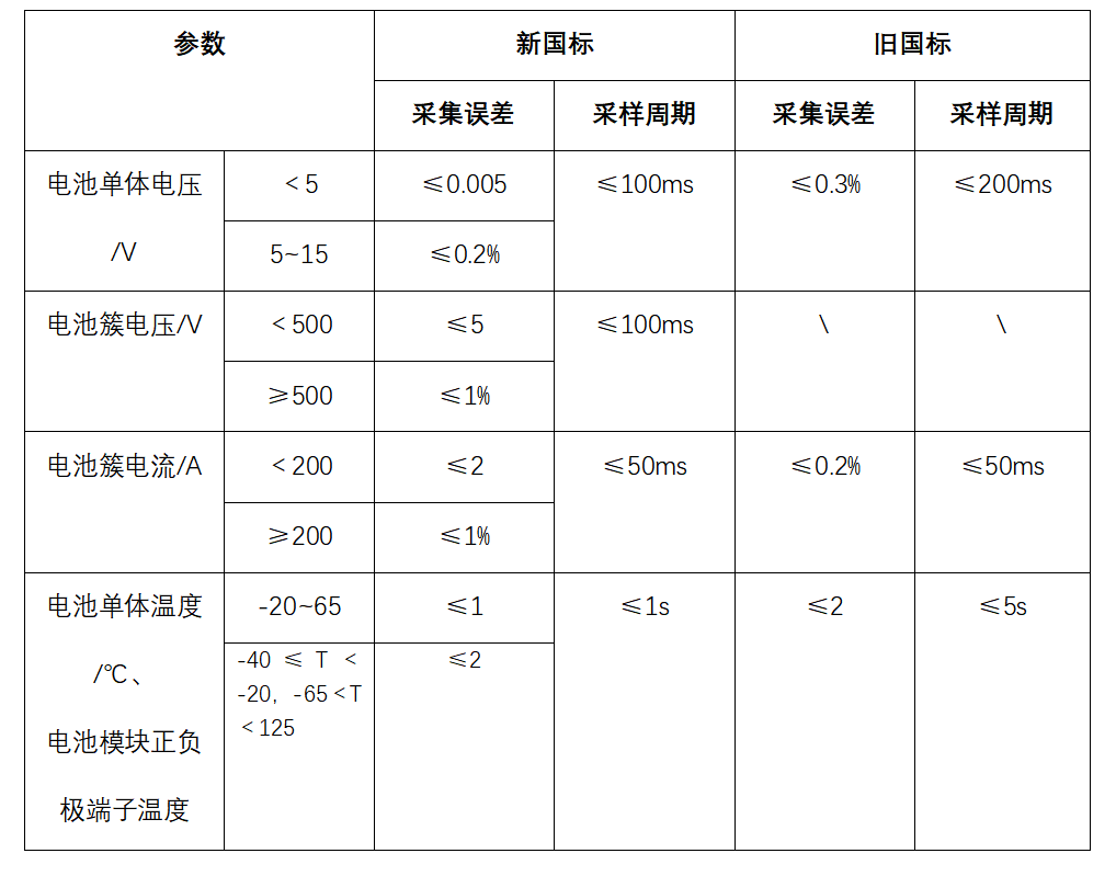 相對于舊國標,新國標對電流、電壓、溫度的采集誤差和采樣周期進行了“精細化”和“科學化”的規(guī)定。