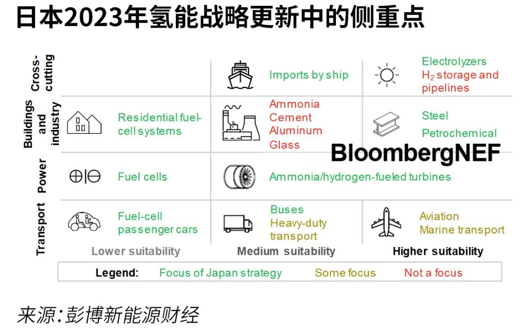 更新后戰(zhàn)略最終將日本的用氫重點(diǎn)擴(kuò)大至供熱、鋼鐵和石化等難以減排的行業(yè),但仍然缺乏對(duì)這些行業(yè)的量化目標(biāo)。重型運(yùn)輸、航空和海運(yùn)也在這一戰(zhàn)略中占有重要地位。日本政府還熱衷于使用以氫生產(chǎn)的合成甲烷以及生物甲烷和碳抵消來(lái)為城市燃?xì)饷撎肌?