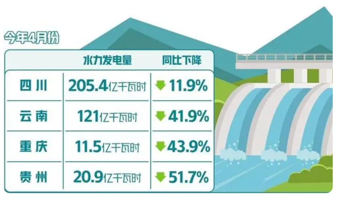 中國(guó)儲(chǔ)能網(wǎng)訊:國(guó)家統(tǒng)計(jì)局?jǐn)?shù)據(jù)顯示,今年4月份,四川水電發(fā)電量205.4億千瓦時(shí),同比下降11.9%;云南水電發(fā)電量121億千瓦時(shí),同比下降41.9%。隨著用電量不斷攀升,今夏西南地區(qū)電力供需形勢(shì)如何?如何積極保障生產(chǎn)生活基本用電需求?