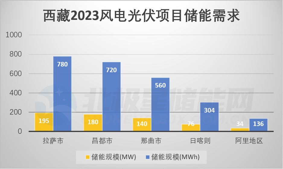 目前西藏5地市新能源項(xiàng)目如下,根據(jù)相關(guān)文件要求,配置儲(chǔ)能規(guī)模不低于光伏裝機(jī)容量的20%,儲(chǔ)能時(shí)長(zhǎng)不低于4小時(shí),那么西藏今年開啟的新能源項(xiàng)目配置儲(chǔ)能規(guī)模將超過625MW/2.5GWh,其中以拉薩、昌都儲(chǔ)能需求最為旺盛。阿里地區(qū)的競(jìng)配文件還明確按要求加裝構(gòu)網(wǎng)型裝置。