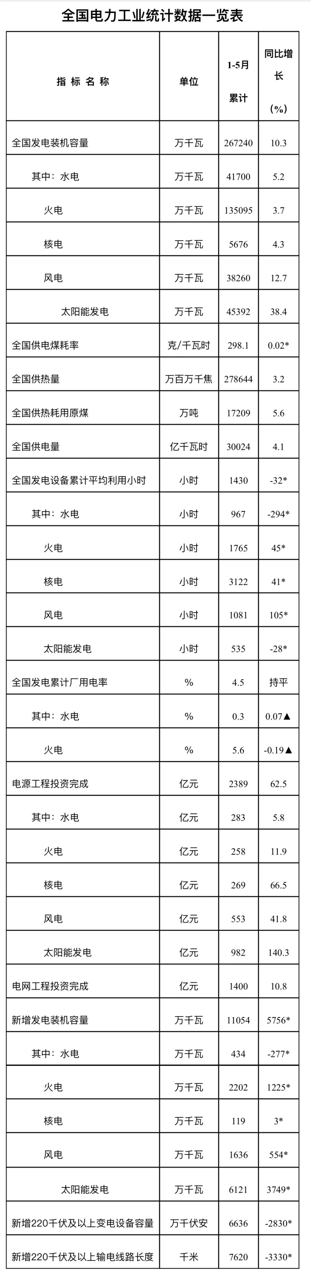 中國儲能網(wǎng)訊:6月20日,國家能源局發(fā)布1-5月份全國電力工業(yè)統(tǒng)計數(shù)據(jù)。