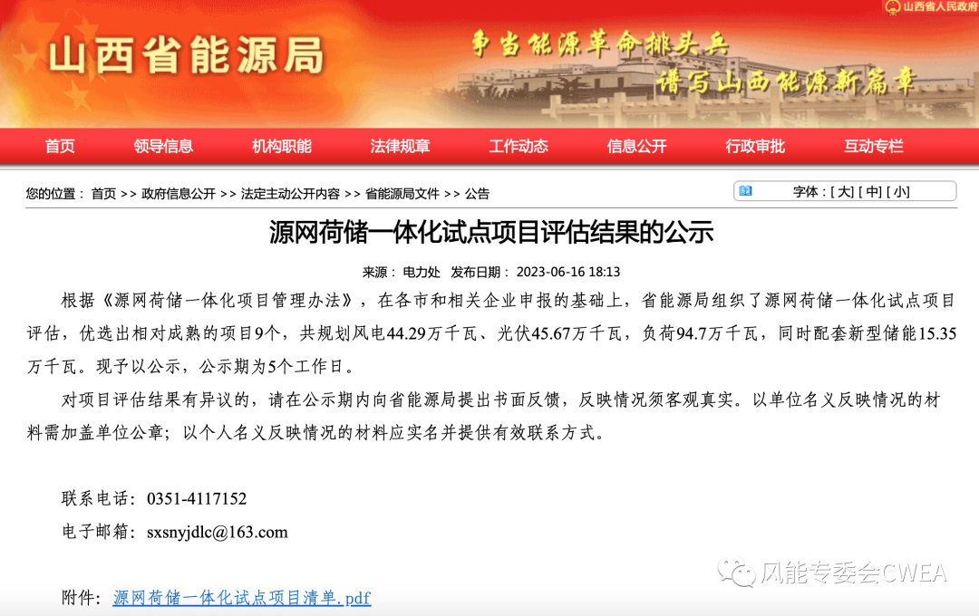 中國儲能網訊:6月16日,山西省能源局發(fā)布源網荷儲一體化試點項目評估結果的公示。山西省能源局優(yōu)選出相對成熟的項目9個,共規(guī)劃風電44.29萬千瓦、光伏45.67萬千瓦,負荷94.7萬千瓦,同時配套新型儲能15.35萬千瓦。