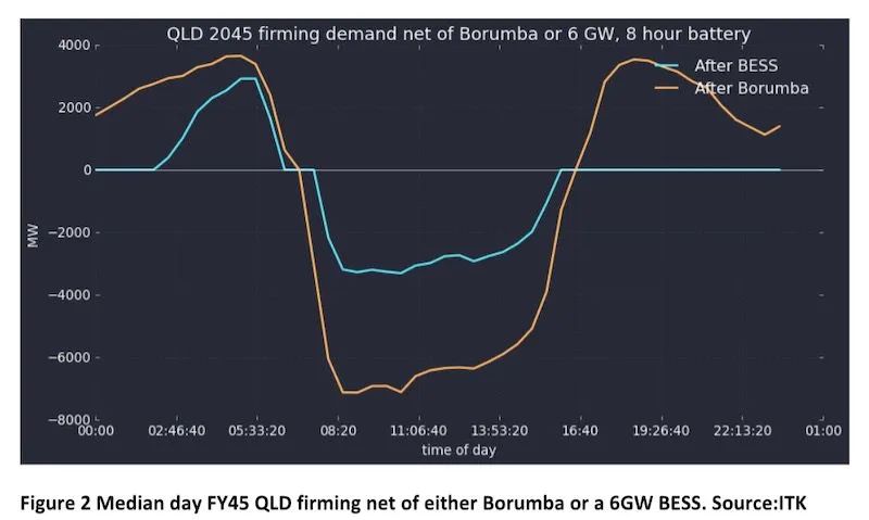 當選擇 Borumba 時,將至少需要另外 2000MW 的可靠容量,可能還需要 4000MW 才能趕上 6GW/8 小時 BESS 的能力。