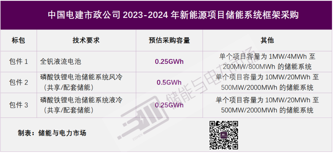 中國儲能網(wǎng)訊:6月21日,中國電建市政公司2023-2024年新能源項目儲能系統(tǒng)框架采購項目競標公告對外發(fā)布。涉及儲能規(guī)模共計1GWh,包括0.25GWh全釩液流電池儲能系統(tǒng)、0.5GWh磷酸鐵鋰儲能系統(tǒng)(風冷)和0.25GWh磷酸鐵鋰儲能系統(tǒng)(液冷)。