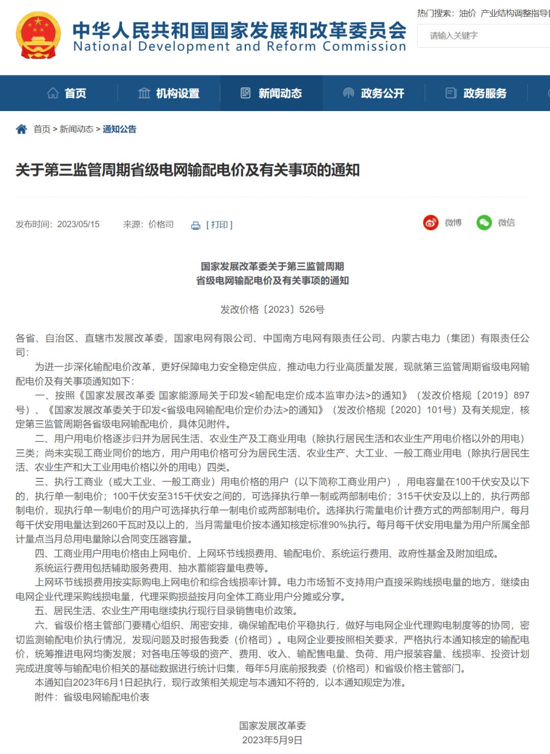 近日,國家發(fā)展改革委印發(fā)《關(guān)于第三監(jiān)管周期省級電網(wǎng)輸配電價及有關(guān)事項的通知》(以下簡稱《通知》),在嚴格成本監(jiān)審基礎上核定第三監(jiān)管周期省級電網(wǎng)輸配電價,進一步深化輸配電價改革,明確電網(wǎng)企業(yè)的功能定位和運營模式。