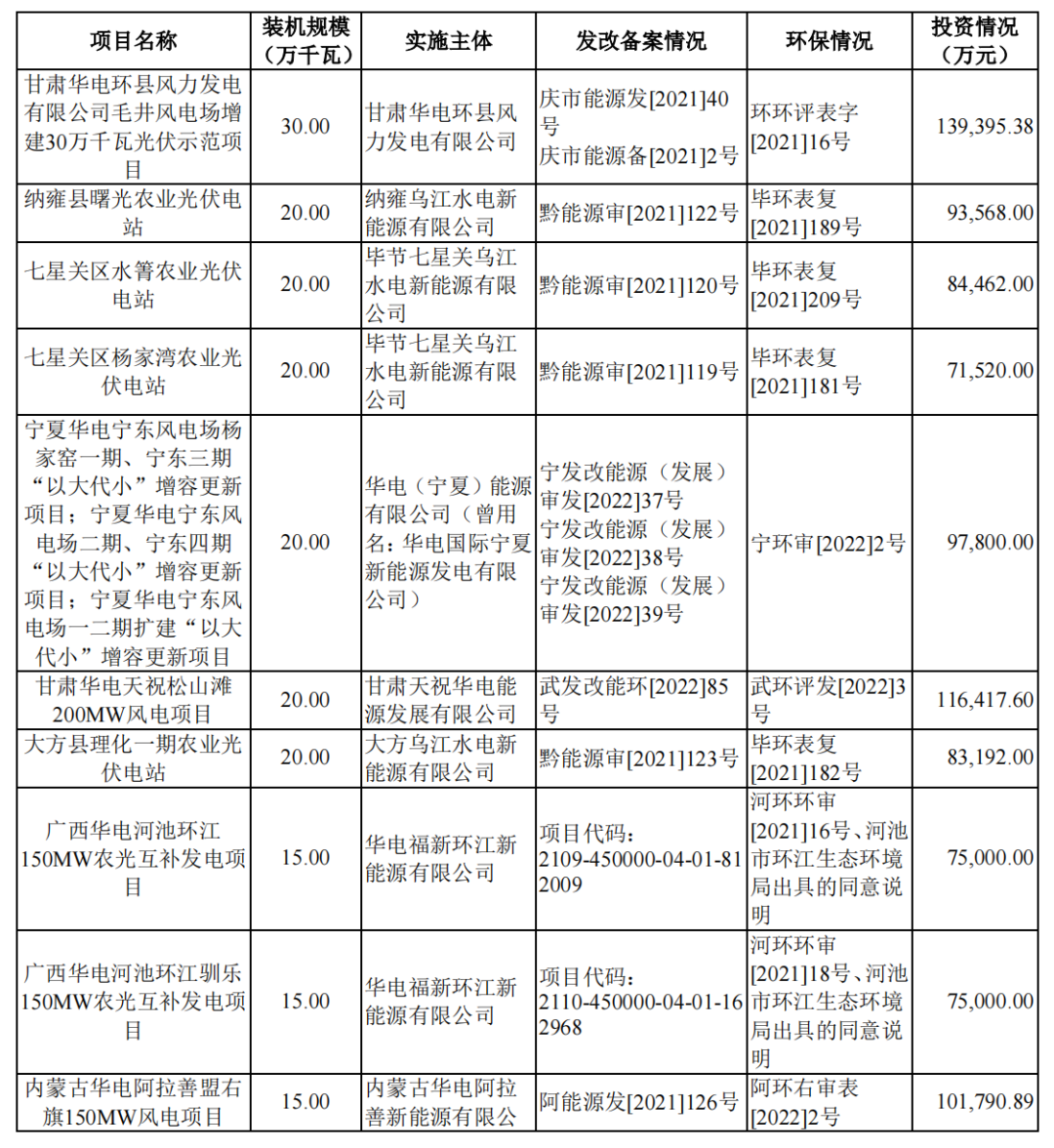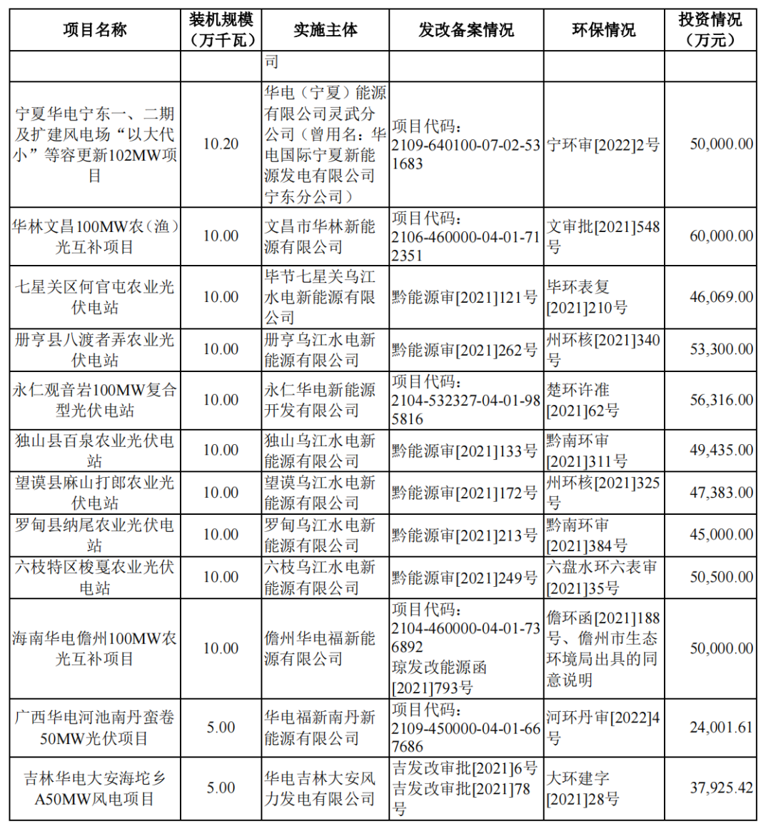 華電新能源在風(fēng)光資源較好位置配套儲(chǔ)能可以調(diào)和新能源間歇性、波動(dòng)性,公司積極在甘肅、貴州等地布局風(fēng)光配儲(chǔ)“新型電力系統(tǒng)協(xié)同發(fā)展項(xiàng)目”,項(xiàng)目平均資本金凈利潤(rùn)率為 11.30%,平均投資回收期(稅后)為 12.86 年,具體項(xiàng)目如下表。