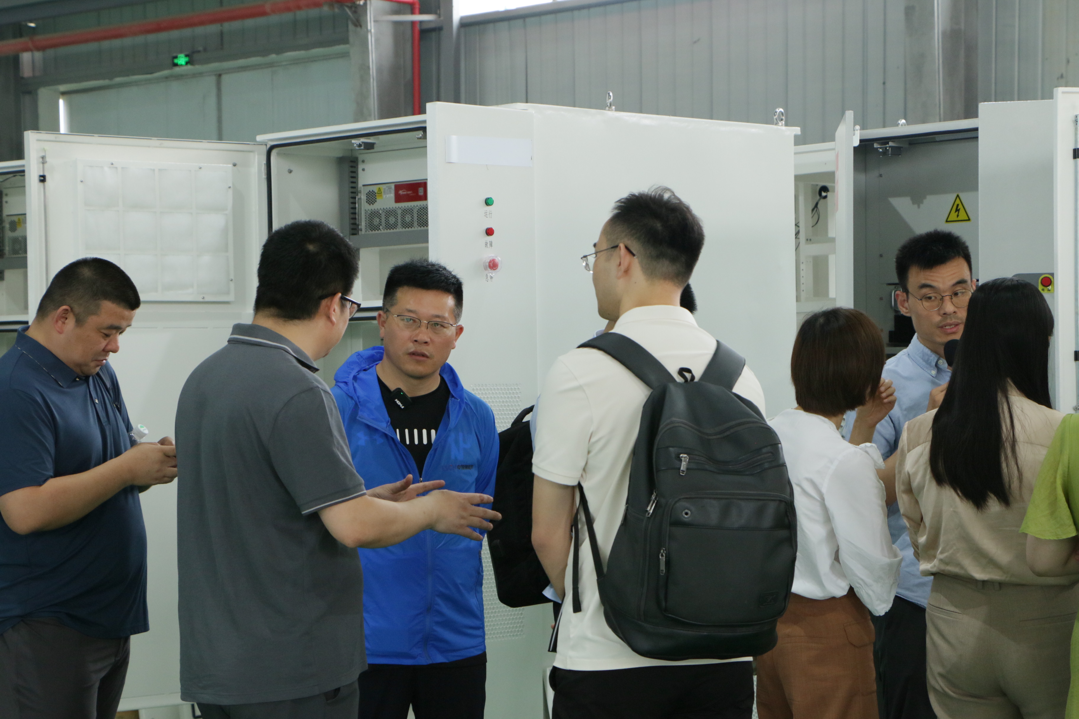 調研期間,專家組一行在董事長王坤的陪同下,參觀了四象新能源六合工廠(江蘇省南京市六合區(qū)龍楊路20號)。在智能化車間里,工人們正在繁忙作業(yè),一排排儲能柜排列整齊,組裝完成后的產(chǎn)品通過系列測試后將發(fā)往全國各地,應用在不同場景。