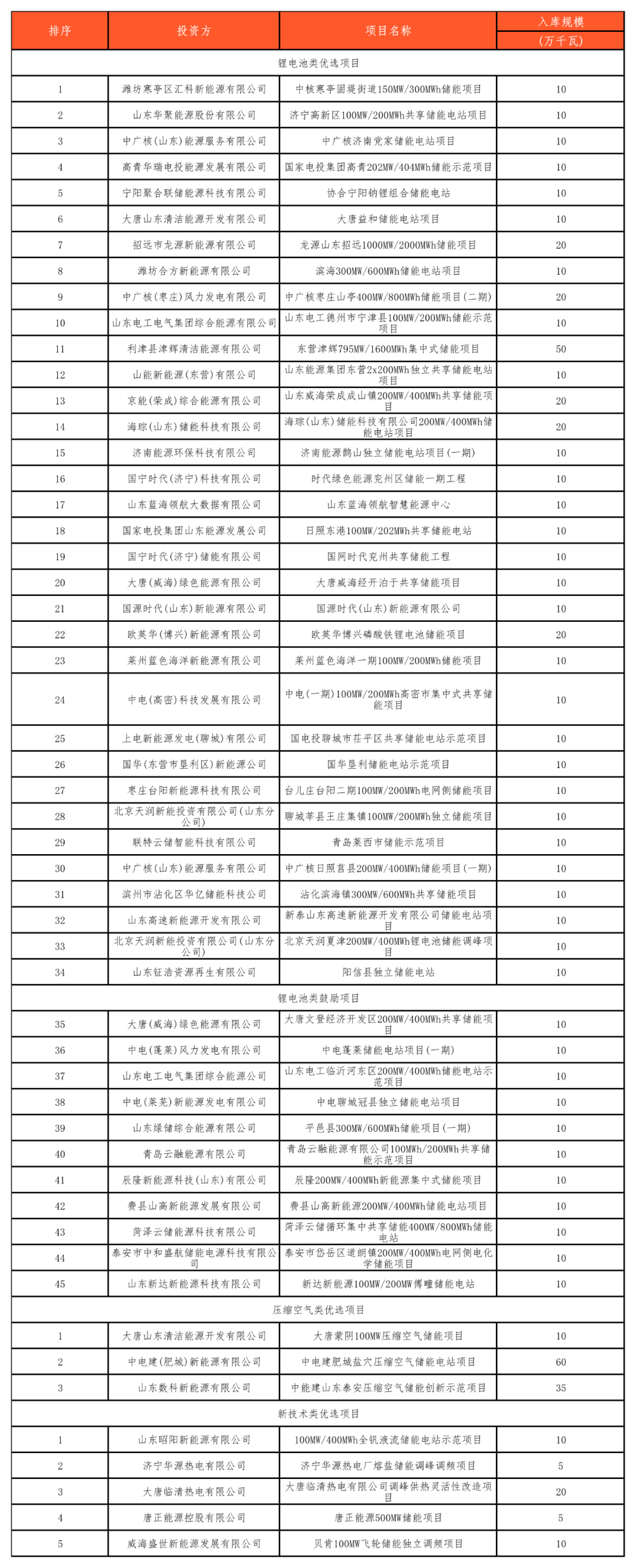 附:山東省2023年度新型儲能入庫項目(第一批)公示名單