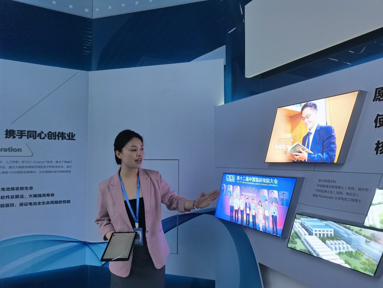 項目交流結(jié)束后,專家組一行驅(qū)車前往長興太湖能谷科技有限公司,在公司領(lǐng)導(dǎo)的陪同下,參觀了數(shù)字化展廳,在工作人員的講解下,深入了解太湖能谷近年來的發(fā)展、取得的成就、產(chǎn)品及技術(shù)研發(fā)實力、項目應(yīng)用案例。