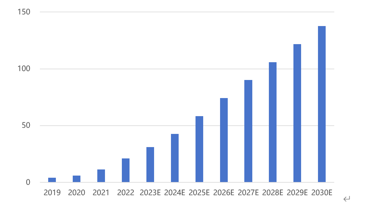 2022年全球虛擬電廠裝機(jī)累計(jì)規(guī)模預(yù)測情況(GW)