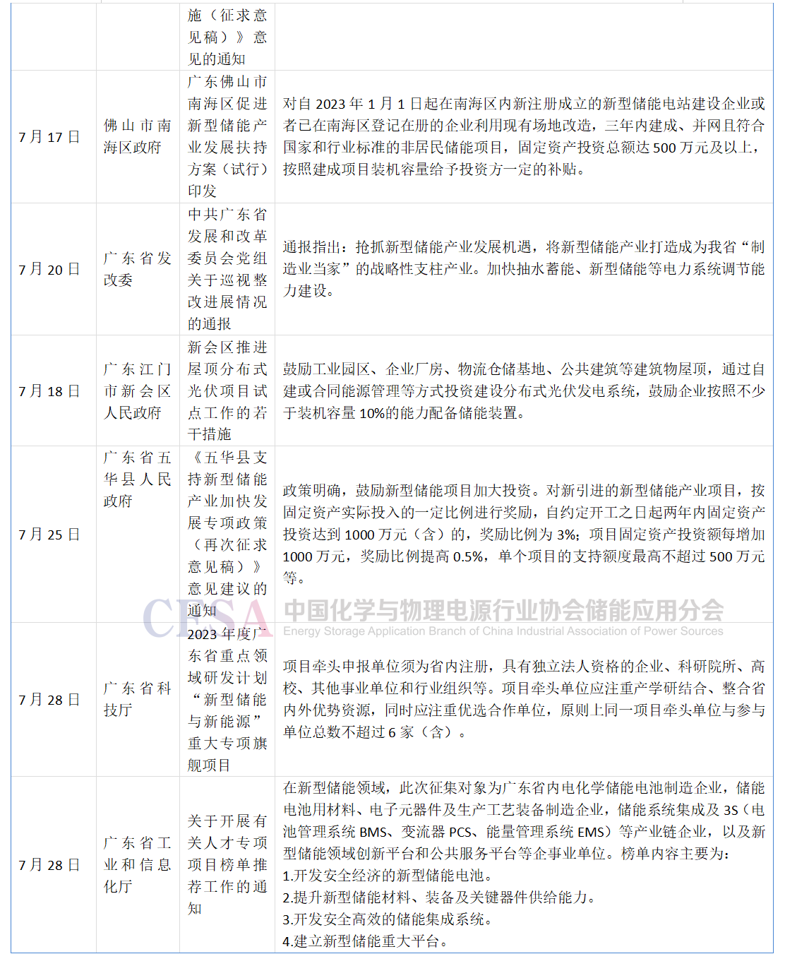 七月全國(guó)性?xún)?chǔ)能行業(yè)政策