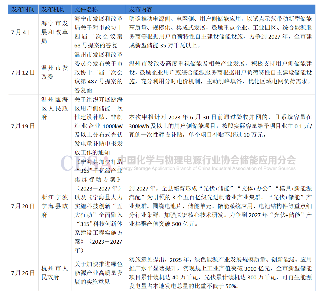 七月浙江省儲(chǔ)能行業(yè)相關(guān)政策