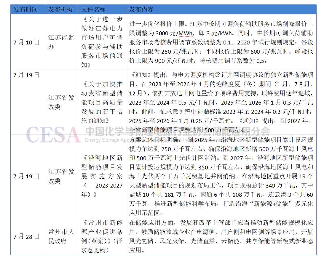 七月江蘇省儲(chǔ)能行業(yè)相關(guān)政策