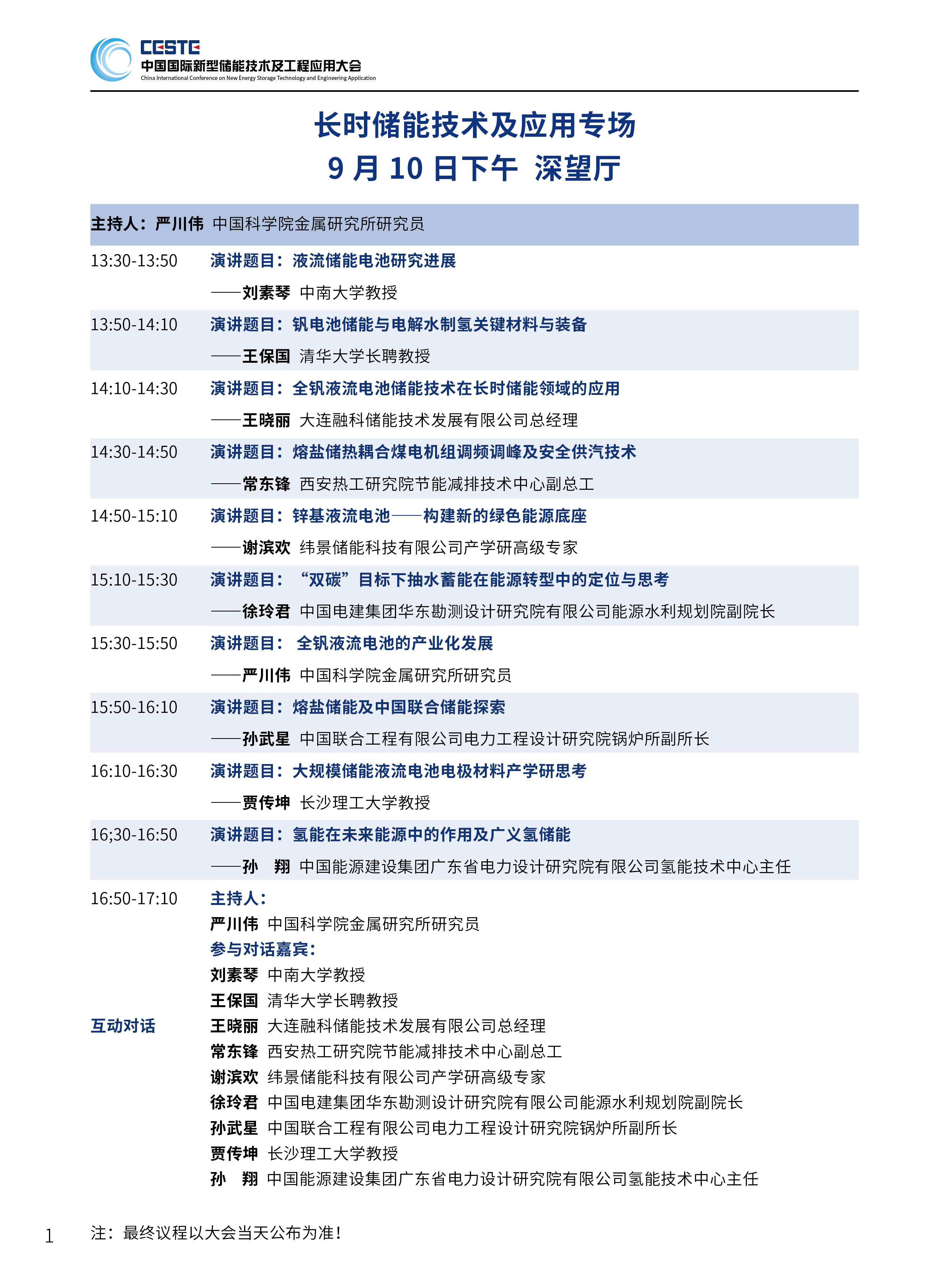本屆大會將安排:大會開幕式暨碳中和能源院士高峰論壇、長時儲能技術(shù)及應(yīng)用、共享儲能、工商業(yè)儲能、混合儲能解決方案、安全與系統(tǒng)集成、新能源動力系統(tǒng)控制技術(shù)、儲能金融與投資、全生命周期碳足跡分析與應(yīng)用技術(shù)、儲能材料、回收與裝備等10個專場論壇,以下為長時儲能專場議程。