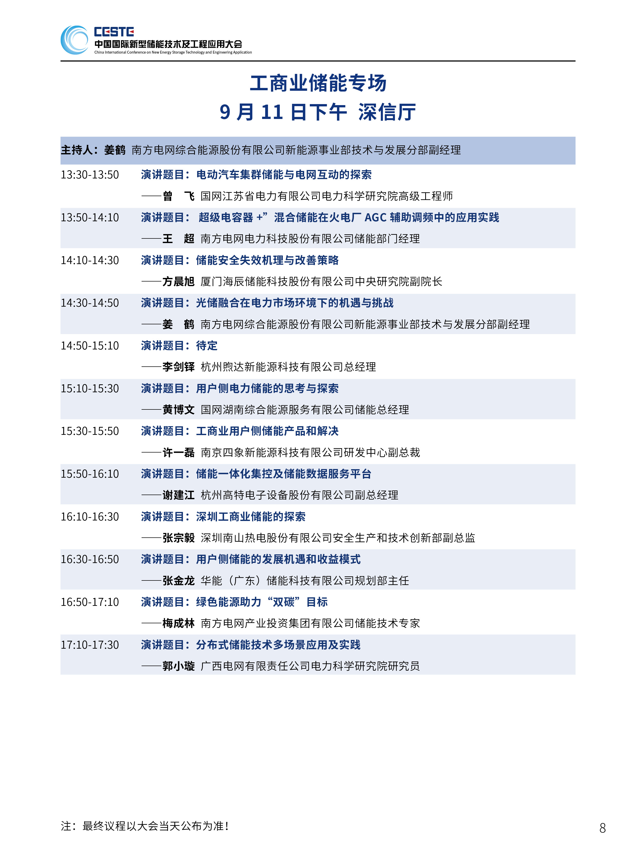本屆大會(huì)將安排:大會(huì)開(kāi)幕式暨碳中和能源院士高峰論壇、長(zhǎng)時(shí)儲(chǔ)能技術(shù)及應(yīng)用、共享儲(chǔ)能、工商業(yè)儲(chǔ)能、混合儲(chǔ)能解決方案、安全與系統(tǒng)集成、新能源動(dòng)力系統(tǒng)控制技術(shù)、儲(chǔ)能金融與投資、全生命周期碳足跡分析與應(yīng)用技術(shù)、儲(chǔ)能材料、回收與裝備等10個(gè)專場(chǎng)論壇,以下為工商業(yè)儲(chǔ)能專場(chǎng)議程。
