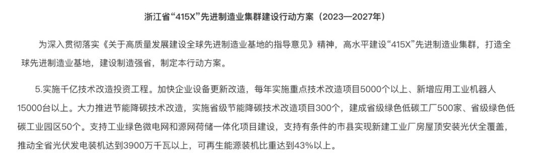 日前,浙江省政府印發(fā)《浙江省“415X”先進(jìn)制造業(yè)集群建設(shè)行動(dòng)方案(2023—2027年)》指出,支持工業(yè)綠色微電網(wǎng)和源網(wǎng)荷儲(chǔ)一體化項(xiàng)目建設(shè),支持有條件的縣(市、區(qū))新建工業(yè)廠房屋頂光伏全覆蓋,到2025年全市累計(jì)光伏發(fā)電裝機(jī)容量達(dá)300萬千瓦,清潔能源裝機(jī)占比49%。溫州市積極響應(yīng)行動(dòng)方案,建成該市首個(gè)“光伏+儲(chǔ)能+充電+放電+電池檢測(cè)“五位一體”綠色低碳綜合能源示范站。