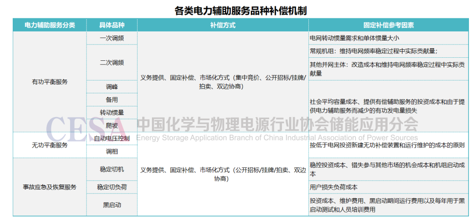 圖二 各類(lèi)電力輔助服務(wù)品種補(bǔ)償機(jī)制