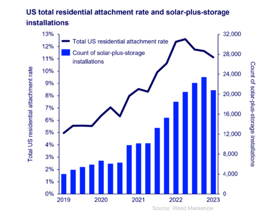 美國住宅太陽能+儲能項(xiàng)目的配套率