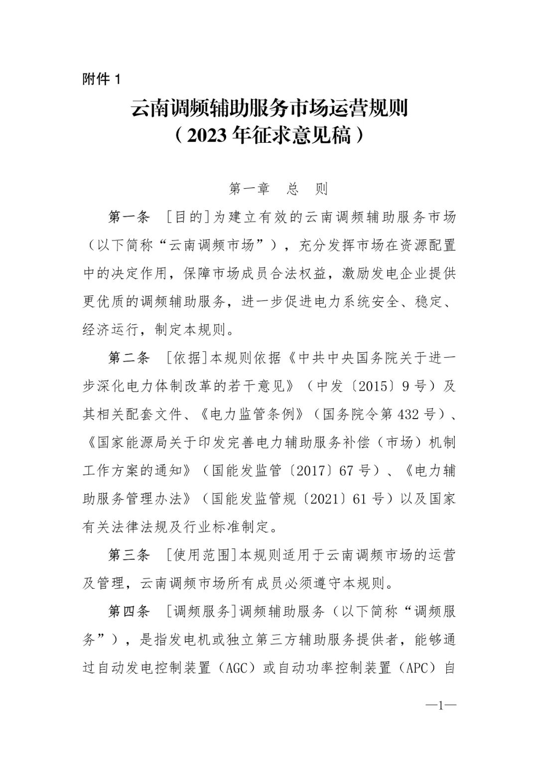 國家能源局云南監(jiān)管辦公室關(guān)于公開征求 《云南調(diào)頻輔助服務(wù)市場運(yùn)營規(guī)則(2023年征求意見稿)》有關(guān)意見建議的通知