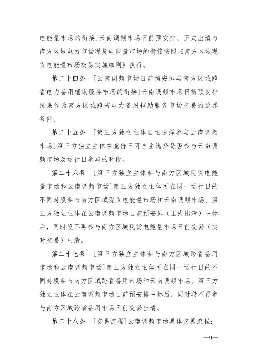 為深入貫徹落實黨中央、國務(wù)院重大決策部署,按照《電力輔助服務(wù)管理辦法》《完善電力輔助服務(wù)補(bǔ)償(市場)機(jī)制工作方案》等有關(guān)文件要求,持續(xù)完善電力輔助服務(wù)市場建設(shè),深化用戶參與的電力輔助服務(wù)分擔(dān)共享機(jī)制,推動第三方獨(dú)立主體參與輔助服務(wù)市場建設(shè),結(jié)合云南調(diào)頻輔助服務(wù)市場結(jié)算試運(yùn)行及市場主體反饋情況,云南能源監(jiān)管辦組織有關(guān)單位修訂完善了《云南調(diào)頻輔助服務(wù)市場運(yùn)營規(guī)則》,現(xiàn)向全社會公開征求意見建議。