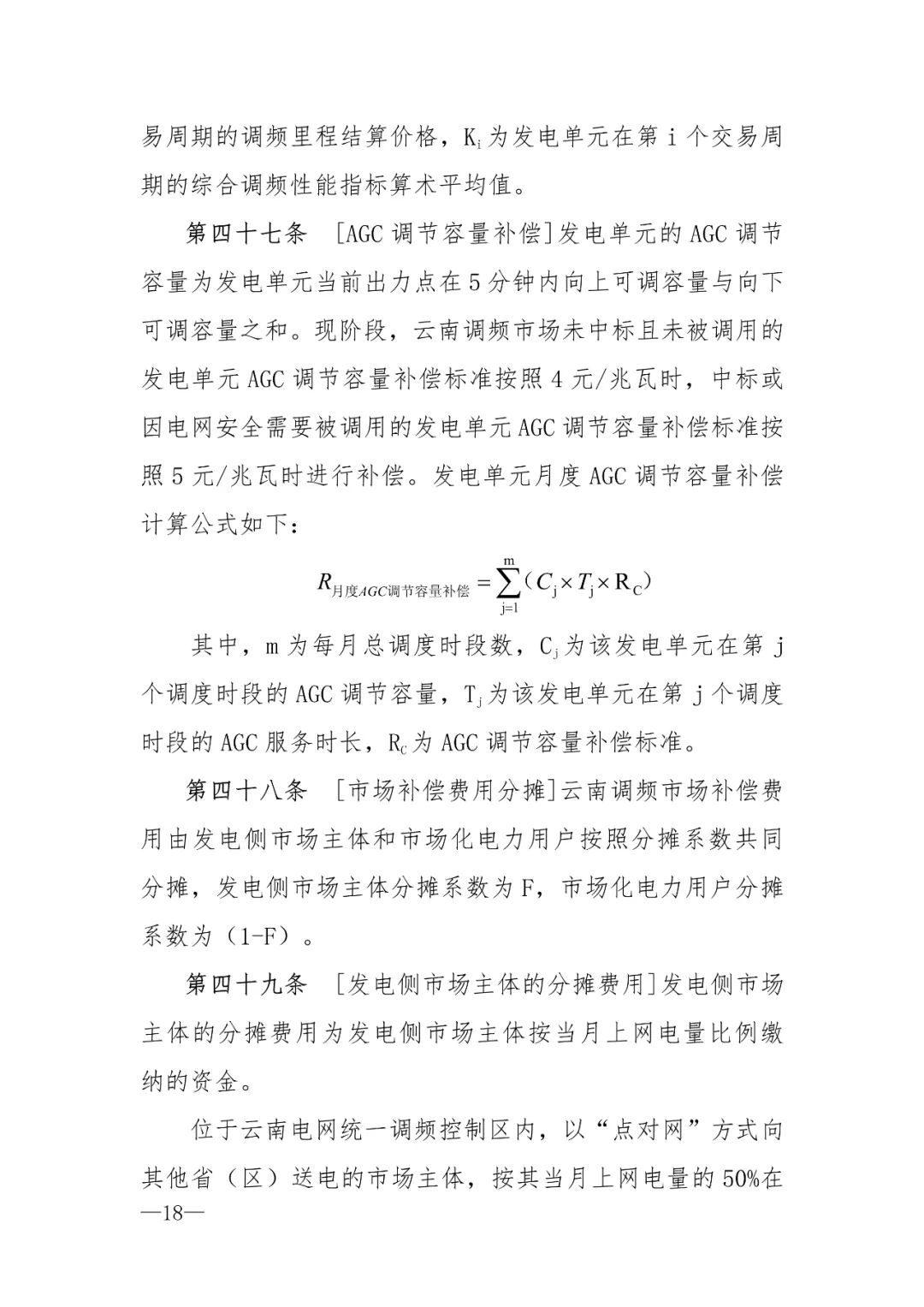 云南調(diào)頻市場補(bǔ)償分為調(diào)頻里程補(bǔ)償、AGC調(diào)節(jié)容量補(bǔ)償兩種形式。