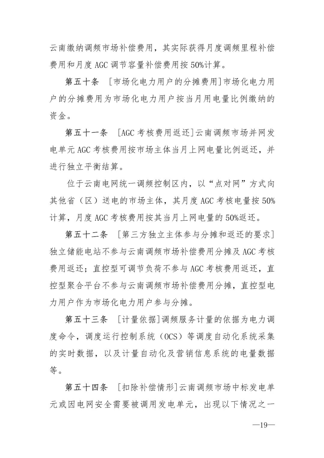 云南調(diào)頻市場未中標(biāo)且未被調(diào)用的發(fā)電單元AGC調(diào)節(jié)容量補(bǔ)償標(biāo)準(zhǔn)按照4元/兆瓦時,中標(biāo)或因電網(wǎng)安全需要被調(diào)用的發(fā)電單元AGC調(diào)節(jié)容量補(bǔ)償標(biāo)準(zhǔn)按照5元/兆瓦時進(jìn)行補(bǔ)償。