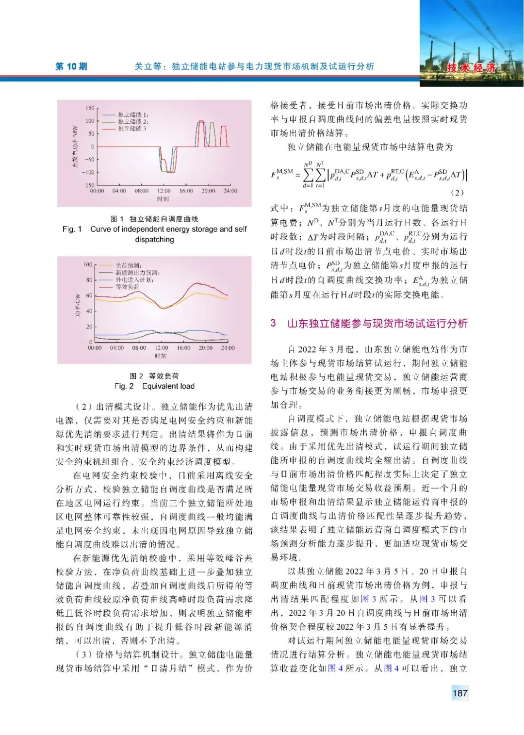 關(guān)立, 周蕾, 劉航航, 等. 獨(dú)立儲(chǔ)能電站參與電力現(xiàn)貨市場(chǎng)機(jī)制及試運(yùn)行分析[J]. 中國(guó)電力, 2022, 55(10): 185-190.