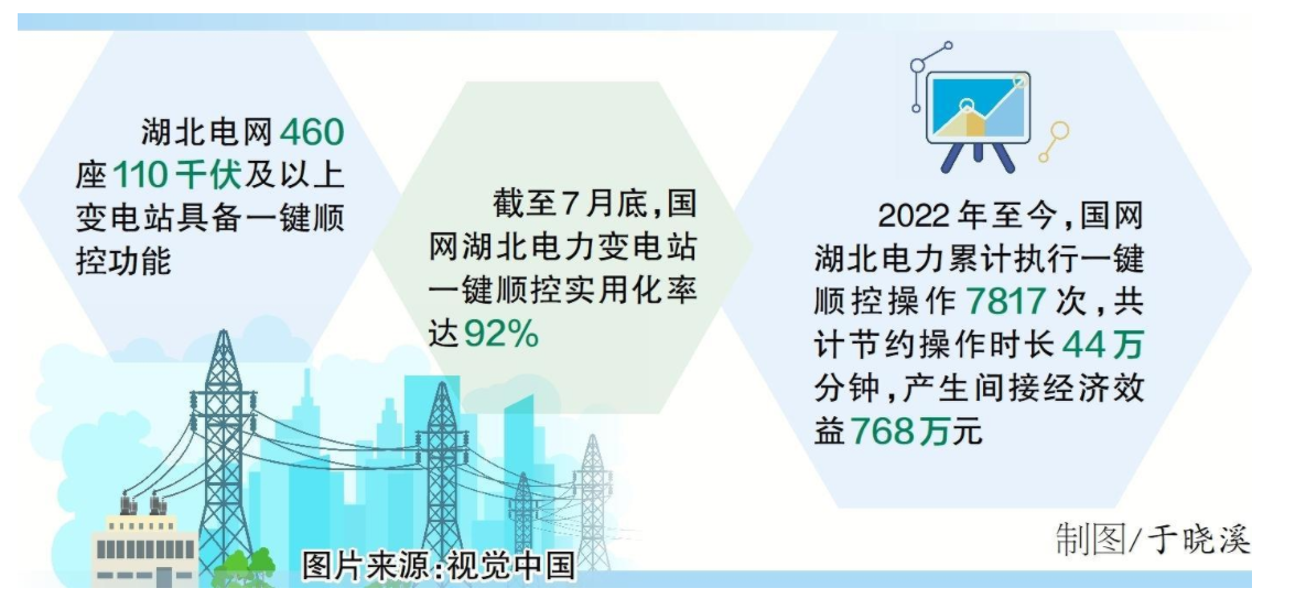 國網(wǎng)湖北電力近年來大力推廣應(yīng)用一鍵順控技術(shù),不斷提升實(shí)用化水平。目前,湖北電網(wǎng)110千伏及以上具備一鍵順控功能的變電站共有460座,在國家電網(wǎng)有限公司系統(tǒng)位居前列。2022年至今,該公司累計執(zhí)行一鍵順控操作7817次,共計節(jié)約操作時長44萬分鐘,產(chǎn)生間接經(jīng)濟(jì)效益768萬元。