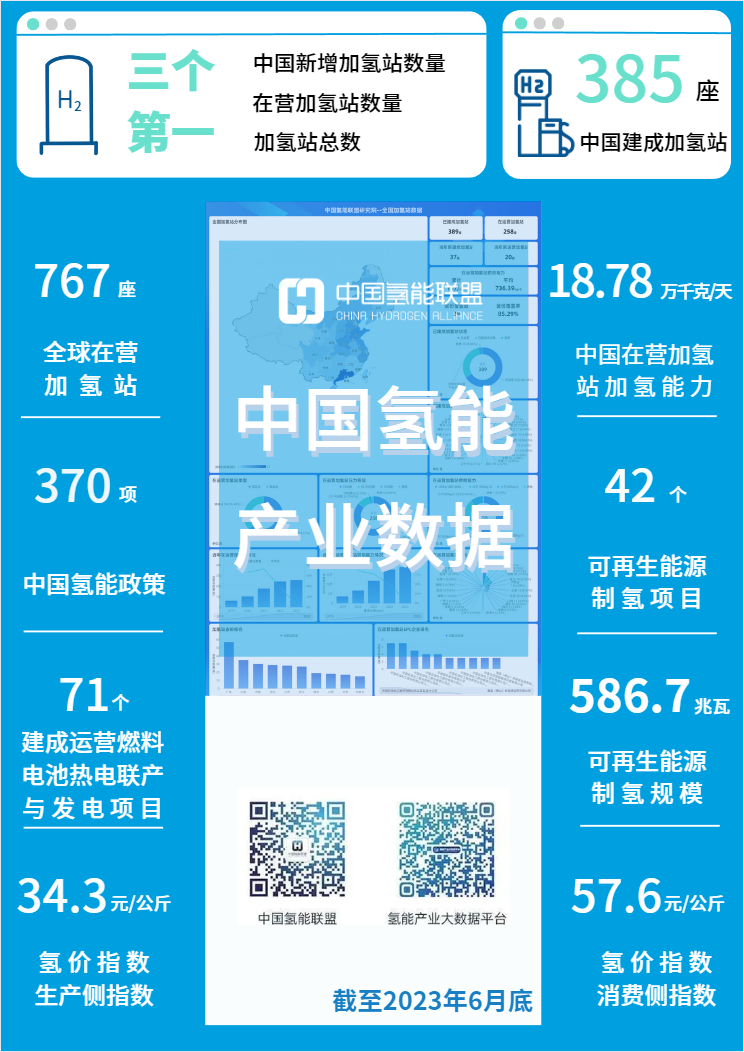 中國儲能網(wǎng)訊:根據(jù)中國氫能聯(lián)盟氫能產(chǎn)業(yè)大數(shù)據(jù)平臺【氫界】數(shù)據(jù)顯示,截止6月底,我國各地方共發(fā)布?xì)淠苷?70項,累計建成運營可再生能源制氫項目42個,累計建成運營燃料電池?zé)犭娐?lián)產(chǎn)與發(fā)電項目71個,累計建成并運營加氫站數(shù)量達(dá)到了385座,新增加氫站數(shù)量、在營加氫站數(shù)量以及加氫站總數(shù)這三項指標(biāo)均位居全球首位。