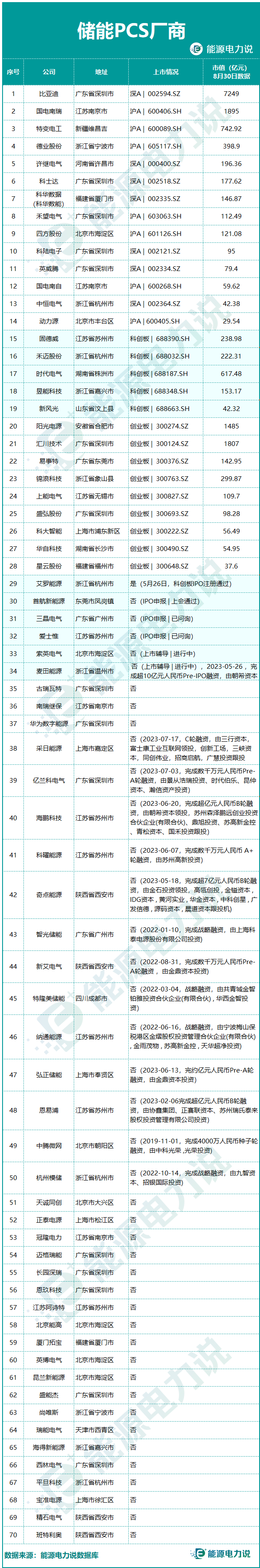 能源電力說根據(jù)公開數(shù)據(jù),整理了70家有儲能PCS產(chǎn)品的廠商。