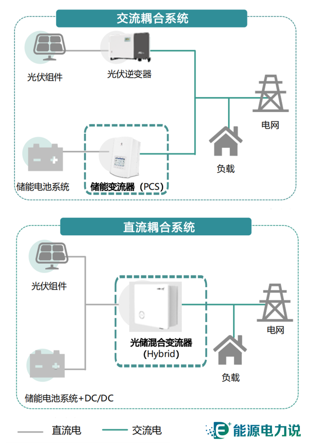 儲能變流器有單獨的儲能變流器(PCS)和光儲混合變流器(Hybrid)兩大類型。單儲能變流器用于交流耦合系統(tǒng),應(yīng)用場景主要是大儲;Hybrid使用直流耦合方案,主要應(yīng)用于戶儲。