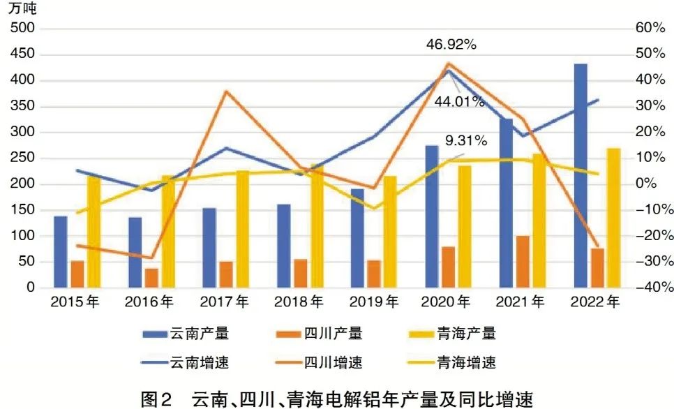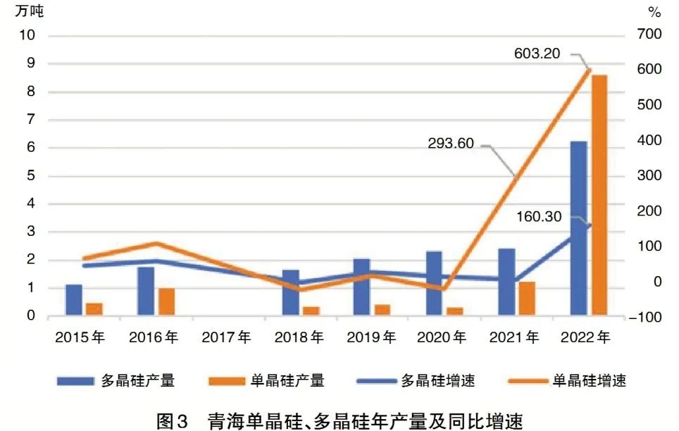 高耗能產(chǎn)業(yè)“西遷”,帶動(dòng)負(fù)荷電量大幅增長?!半p碳”目標(biāo)下碳排放成為產(chǎn)業(yè)發(fā)展的重要制約因素。新增可再生能源和原料用能不納入能耗總量控制、碳交易市場、歐盟碳關(guān)稅等政策,為西部省份發(fā)揮可再生能源優(yōu)勢(shì)發(fā)展經(jīng)濟(jì)和東部高耗能企業(yè)利用可再生能源布局產(chǎn)能創(chuàng)造了互利共贏的合作機(jī)會(huì)?!笆濉焙笃冢颇?、四川、青海等省以優(yōu)惠電價(jià)政策,大規(guī)模引進(jìn)了電解鋁、晶硅、鹽湖產(chǎn)業(yè)、數(shù)據(jù)中心等高耗能企業(yè),三省2020年電解鋁產(chǎn)量增速分別達(dá)44%、47%和9%(圖2)。云南從山東、河南、陜西、甘肅等省份承接了超500萬噸電解鋁產(chǎn)能,電解鋁用電量占工業(yè)用電量比重從2019年的20%上升到2022年的33%。青海2022年單晶硅、多晶硅產(chǎn)量分別同比增長6倍和1.6倍(圖3)。高耗能行業(yè)帶動(dòng)了用電量超預(yù)期增長的同時(shí),也抬高了負(fù)荷尖峰,加之工業(yè)負(fù)荷調(diào)節(jié)潛力不足,加劇了電力供需矛盾。