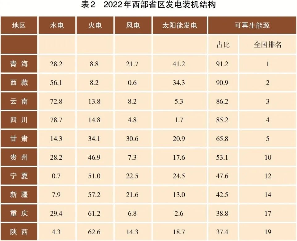 可再生能源裝機(jī)占比高,受氣候影響大。我國西部地區(qū)憑借其豐富的水和風(fēng)光資源,可再生能源發(fā)電裝機(jī)占比不斷攀升,青海、西藏、云南、四川、甘肅等省區(qū)可再生能源已位居發(fā)電裝機(jī)主體地位,占比居全國前五(表2)。西南地區(qū)是世界上規(guī)模最大的水電基地,四川、云南的水電裝機(jī)占比分別達(dá)到78.7%、72.8%,但具有年調(diào)節(jié)及以上能力的水電站比重少,跨季調(diào)節(jié)能力差,電力供需豐枯、峰谷矛盾長期存在。四川全網(wǎng)三分之二為無調(diào)節(jié)能力的徑流式水電,發(fā)電能力受來水制約,在遭遇如2022年“最高溫度、最少來水、最長時(shí)間”的極端氣候時(shí)易出現(xiàn)電力電量缺口,電源“自保”能力不足。西北地區(qū)新能源裝機(jī)規(guī)模已超過煤電,成為地區(qū)第一大電源,新能源反調(diào)峰特性突出,日內(nèi)新能源波動(dòng)量由2018年的2654萬千瓦上升至2022年的6096萬千瓦,是負(fù)荷日峰谷差的3倍,光伏占比不斷提高,“夏豐冬枯、日盈夜虧”的情況不斷加劇,負(fù)荷高峰時(shí)期電力供需緊張。