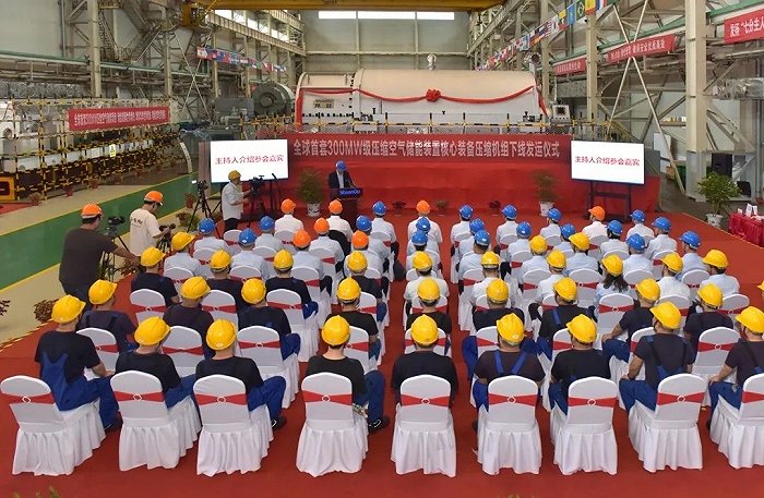 9月20日上午,全球首套非補(bǔ)燃型300MW級(jí)壓縮空氣儲(chǔ)能項(xiàng)目核心裝備壓縮機(jī)組下線發(fā)運(yùn)儀式在陜鼓集團(tuán)臨潼制造園區(qū)總裝車間舉行。該項(xiàng)目是陜鼓與中能建數(shù)字科技集團(tuán)有限公司(以下簡(jiǎn)稱“能建數(shù)科”)強(qiáng)強(qiáng)合作,以能建數(shù)科湖北應(yīng)城300MW壓縮空氣儲(chǔ)能項(xiàng)目為依托,在世界級(jí)壓縮空氣儲(chǔ)能領(lǐng)域的一次全新探索。項(xiàng)目建成后,將助力非補(bǔ)燃?jí)嚎s空氣儲(chǔ)能領(lǐng)域?qū)崿F(xiàn)儲(chǔ)能規(guī)模世界第一、單機(jī)功率世界第一、轉(zhuǎn)換效率世界第一。