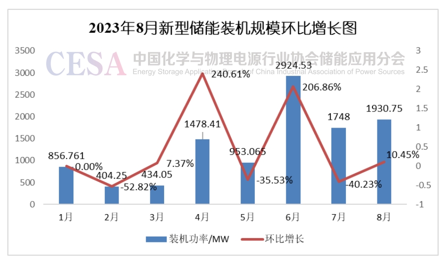 圖1 2023年8月新型儲(chǔ)能裝機(jī)規(guī)模環(huán)比增長(zhǎng)圖