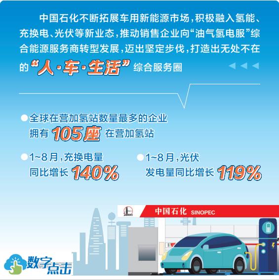 著眼市場(chǎng)需求,積極融入市場(chǎng)新格局。中國石化堅(jiān)持以自建自營為主、站內(nèi)站外同步推進(jìn)的方式,加快布局充換電站、光伏發(fā)電,著力構(gòu)建全國“一張網(wǎng)”,鞏固行業(yè)領(lǐng)先地位,以實(shí)際效果樹立標(biāo)桿,凝聚共識(shí),堅(jiān)定信心,加快充換電、光伏業(yè)務(wù)發(fā)展,推動(dòng)各銷售企業(yè)由“要我干”向“我要干”轉(zhuǎn)變。1~8月,充換電量同比增長140%,光伏發(fā)電量同比增長119%。