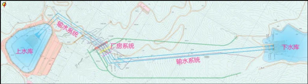 抽水蓄能電站主要建筑物組成一般包括:上/下水庫(kù)、輸水系統(tǒng)、廠房系統(tǒng)、其他專用建筑物等。
