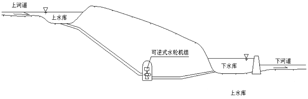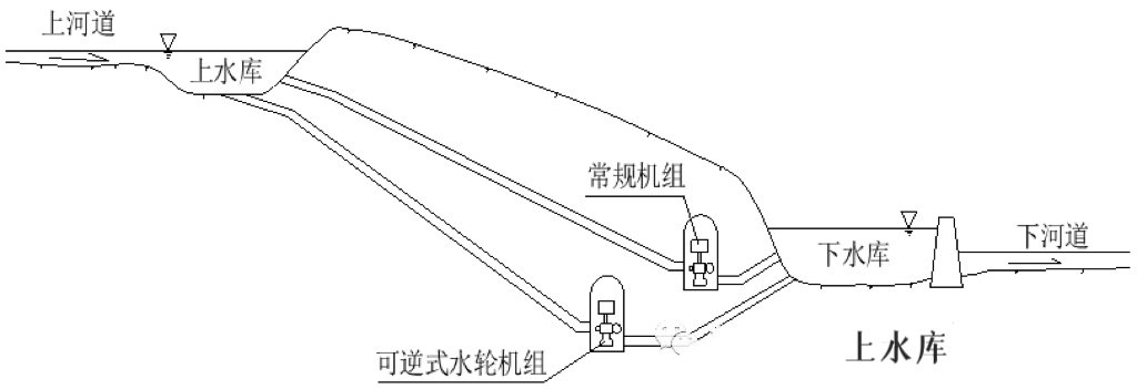 當(dāng)上水庫(kù)沒(méi)有天然徑流或者天然徑流量較小,抽水蓄能電站運(yùn)行所需要的水量、來(lái)自于上/下水庫(kù)間彼此循環(huán)時(shí),則此電站為純抽水蓄能電站。