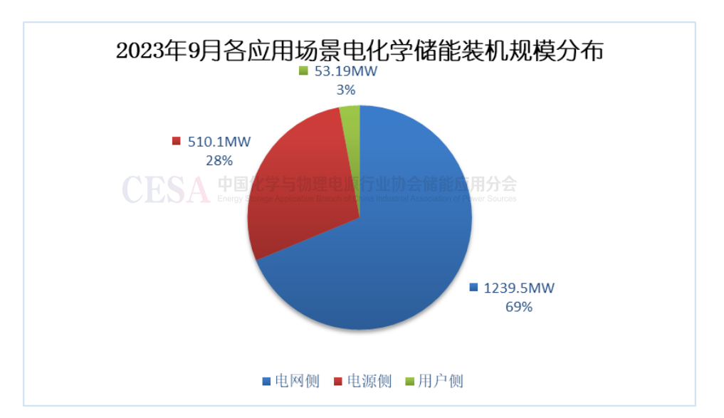 圖2-2 2023年9月各應(yīng)用場景電化學(xué)儲能裝機規(guī)模分布圖