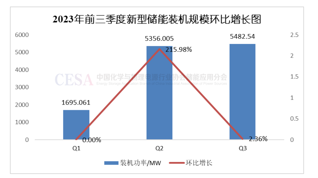 圖1-2 2023年前三季度新型儲能裝機規(guī)模環(huán)比增長圖