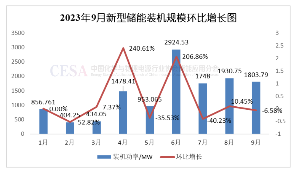 圖1-1 2023年9月新型儲能裝機規(guī)模環(huán)比增長圖