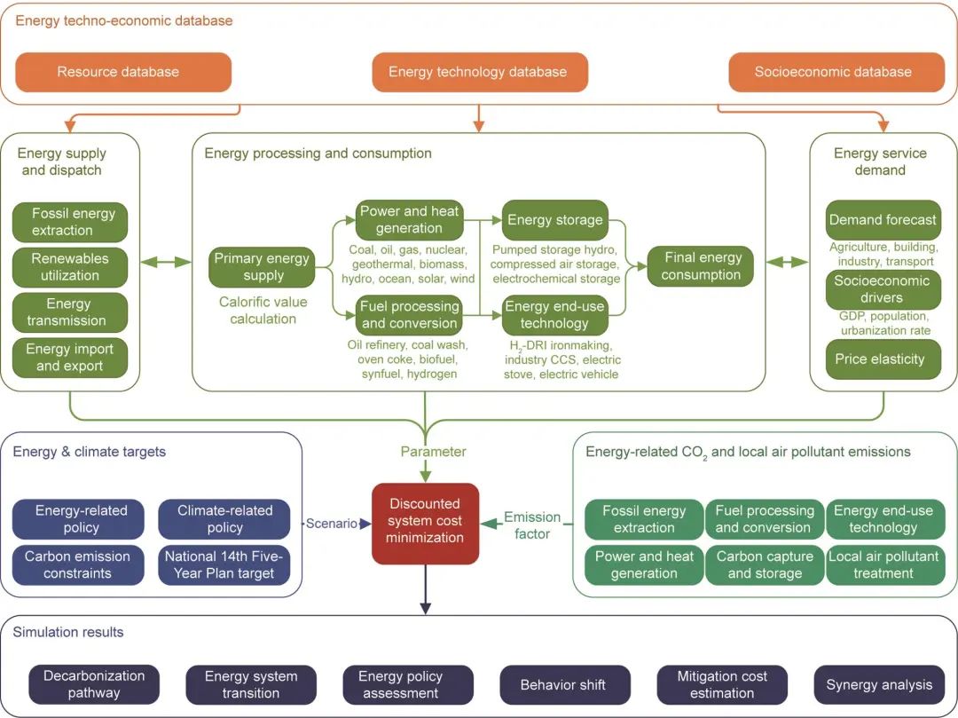 中國實現(xiàn)碳中和的能源轉(zhuǎn)型路徑備受世界的關(guān)注。由于中國碳排放大部分來自于能源系統(tǒng),因此能源系統(tǒng)脫碳路徑很大程度上決定了中國的脫碳路徑。