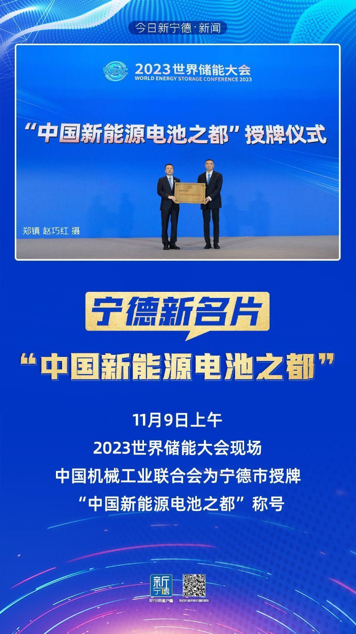 會(huì)上,中國(guó)機(jī)械工業(yè)聯(lián)合會(huì)授予寧德市“中國(guó)新能源電池之都”稱號(hào)。